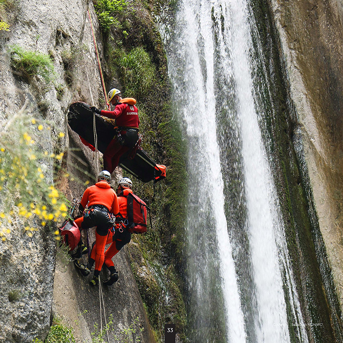 繩索的伸長率越高,其吸收下墜能量的能力就越強。靜力和低彈力安全繩具有較低的伸長率,所以不該使用這類繩索保護(hù)領(lǐng)攀者。與適當(dāng)?shù)闹苿悠鬟B用后,靜力繩和低彈力繩更適合做系統(tǒng)保護(hù),由于靜力繩和低彈力繩具有較低的伸長率,所以能夠在最短的距離內(nèi)控制擔(dān)架和擔(dān)架護(hù)送員的下墜。