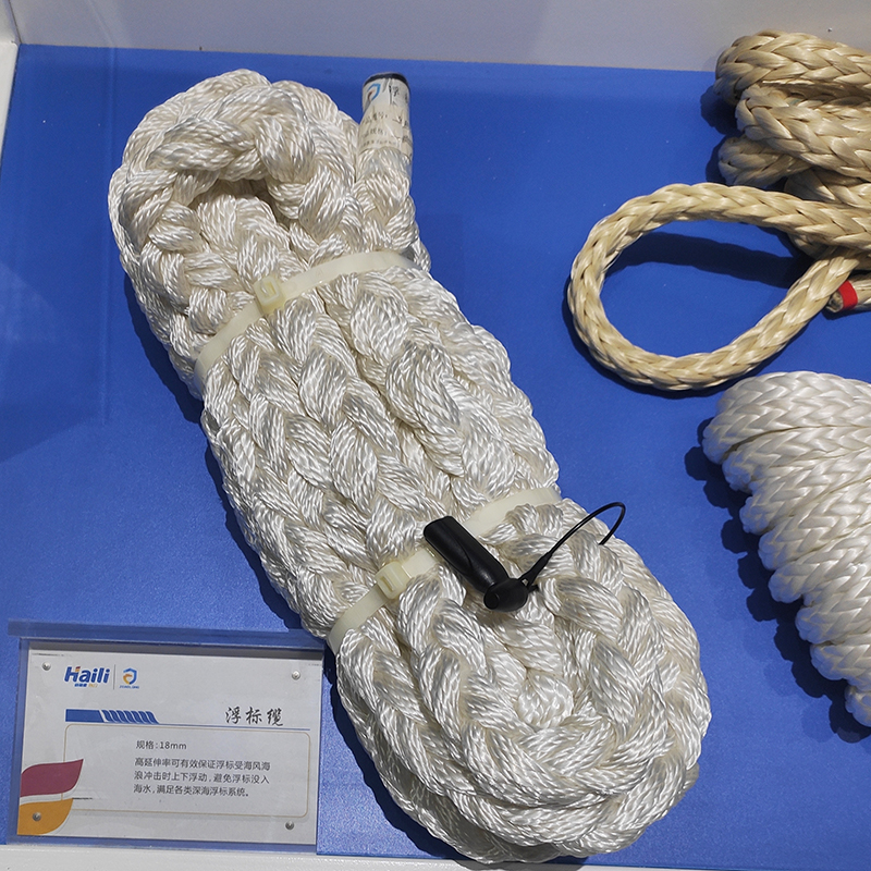 采用優(yōu)質(zhì)高強(qiáng)尼龍纖維,可定制直徑15mm~60mm浮標(biāo)專(zhuān)用繩纜,經(jīng)過(guò)特殊后整理工藝,斷裂強(qiáng)力50kN~600kN,延伸率20%~45%,高延伸率可有效保證浮標(biāo)受海風(fēng)海浪沖擊時(shí)上下浮動(dòng),避免浮標(biāo)沒(méi)入海水,這款浮標(biāo)纜繩滿(mǎn)足各類(lèi)深海浮標(biāo)系統(tǒng)。
