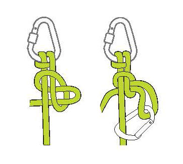 夾在下面較粗的繩子上的結(jié)加載。用于下降或救援使用。如果普魯士結(jié)不成立,增加環(huán)的數(shù)量。