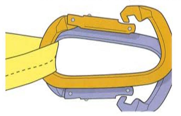 無(wú)鎖安全鉤,或者未鎖緊的有鎖安全鉤容易引起滑出現(xiàn)象(rollout)。安全鉤的尺寸和形狀、將要鉤掛的器材以及您的扭轉(zhuǎn)動(dòng)作都可能造成開(kāi)口被推開(kāi)和安全鉤的滑出現(xiàn)象。查看與您安全吊帶連接的安全鉤鉤掛點(diǎn),以確保這種可能不會(huì)發(fā)生,然后保證安全鉤開(kāi)口一直處于鎖緊狀態(tài),或者使用成對(duì)的無(wú)鎖安全鉤。