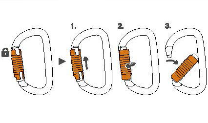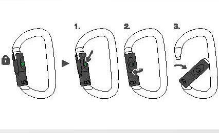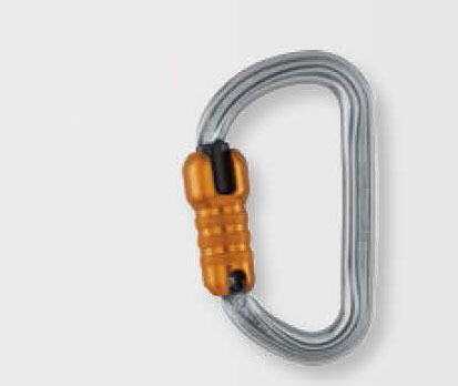 由鋁合金制成,它的橢圓外形可使較寬的裝備如滑輪、上升器和移動止墜器位于比較好的位置。流暢的內(nèi)部設(shè)計讓使用更為簡便。它有多種上鎖系統(tǒng):自動鎖門或手動鎖門。可與固定桿配合使用,能使鎖扣在主軸受力,減少翻轉(zhuǎn)的風(fēng)險,并保持與裝備的連接。