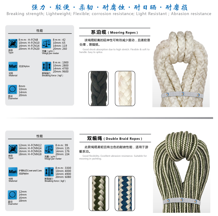 專業(yè)游艇纜繩的高性能讓它能夠取代鋼絲且重量又比鋼絲輕,可浮水、質(zhì)量輕、完全不吸水,是追求速度與靈活的用戶們所喜愛的繩索,加上五彩繽紛的配色,被廣泛應(yīng)用于游艇系泊等領(lǐng)域。